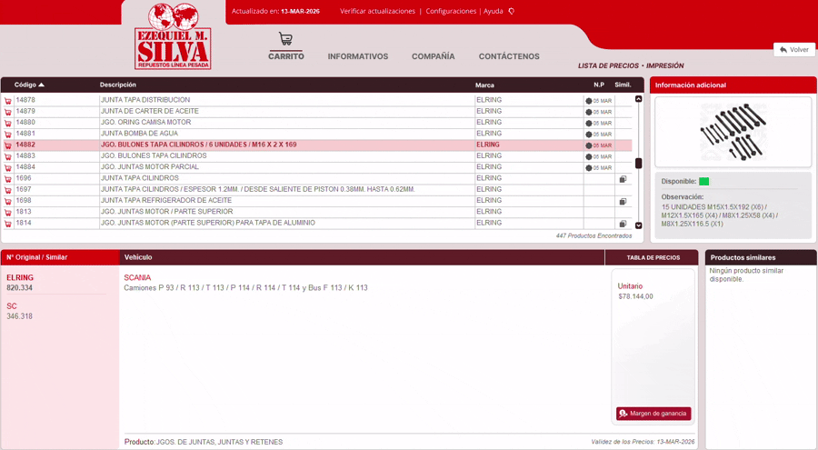Ubicados en la ciudad de Rosario, Santa Fe, nos dedicamos a la importación y distribución mayorista de línea pesada en todo el país. Ofrecemos una amplia gama de más de 15.000 piezas de alta calidad, tanto internacional como nacional, lo que nos ha convertido en un proveedor confiable y esencial para los comercios especializados.